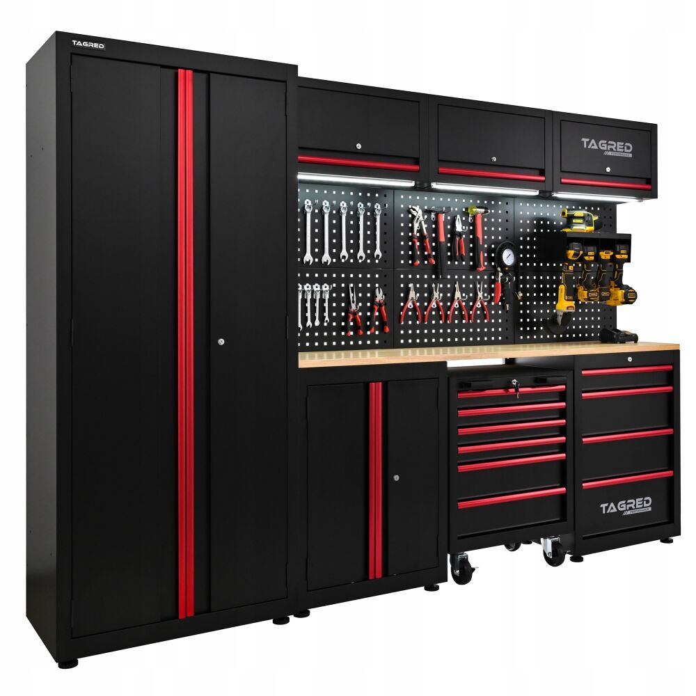 Meble garażowe, warsztatowe TAGRED TA193 regał szafka do warsztatu garażu 260 cm akcesoria, LED