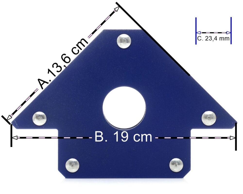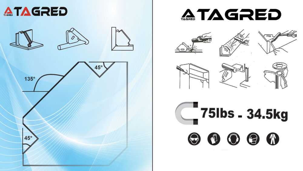 Kątownik pomocny w spawaniu, montażach elementów metalowych,lutowaniu, trasowaniu oraz ewentualnie podnoszeniu elementów stalowych. Silny magnes o dużej powierzchni obudowany metalowymi płytkami, który umożliwi precyzyjne i trwałe ułożenie materiału pod kątem 45, 90 lub 135 stopni, a dzięki dużej sile przyciągania zapewni stabilną, nieruchomą pozycję.