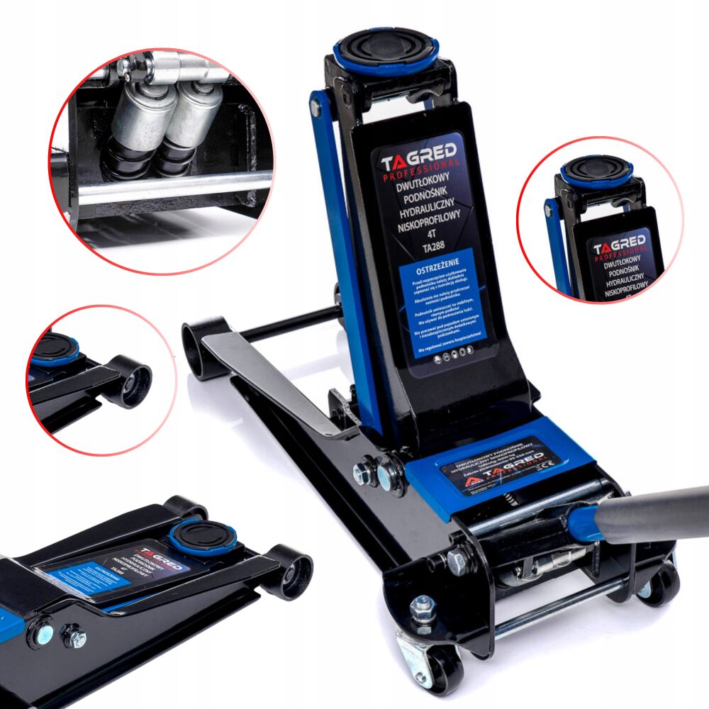 Niskoprofilowy podnośnik samochodowy lewarek 4 tony, 2 pompy, 95-550 mm
