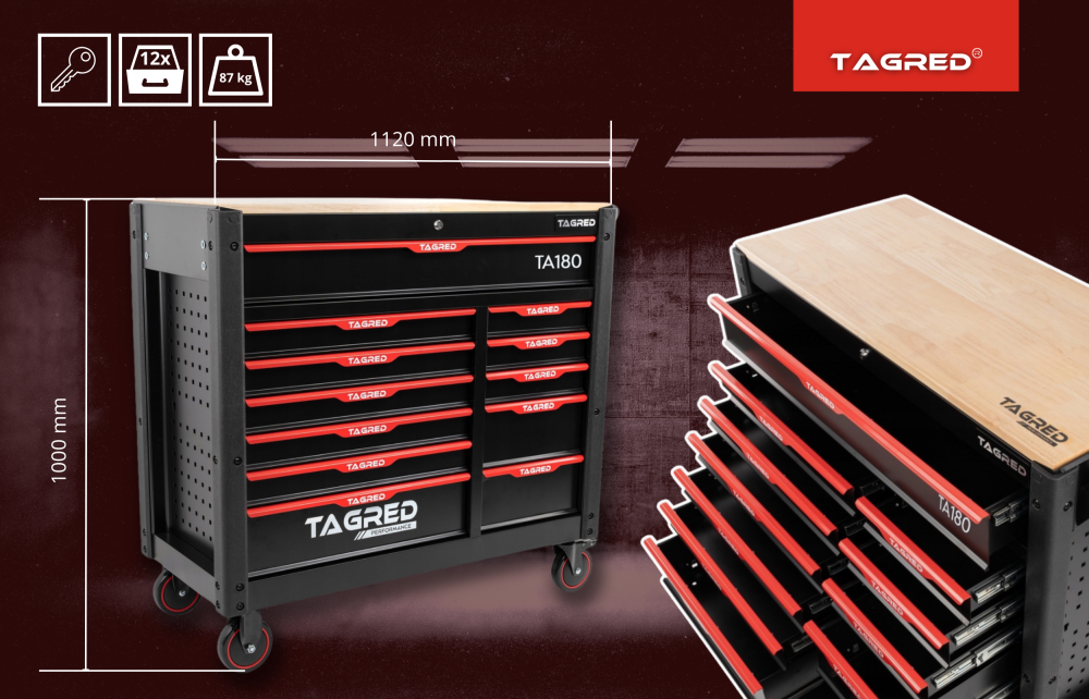 Szafa warsztatowa, wózek warsztatowy TAGRED Performance XXL 12 szuflad